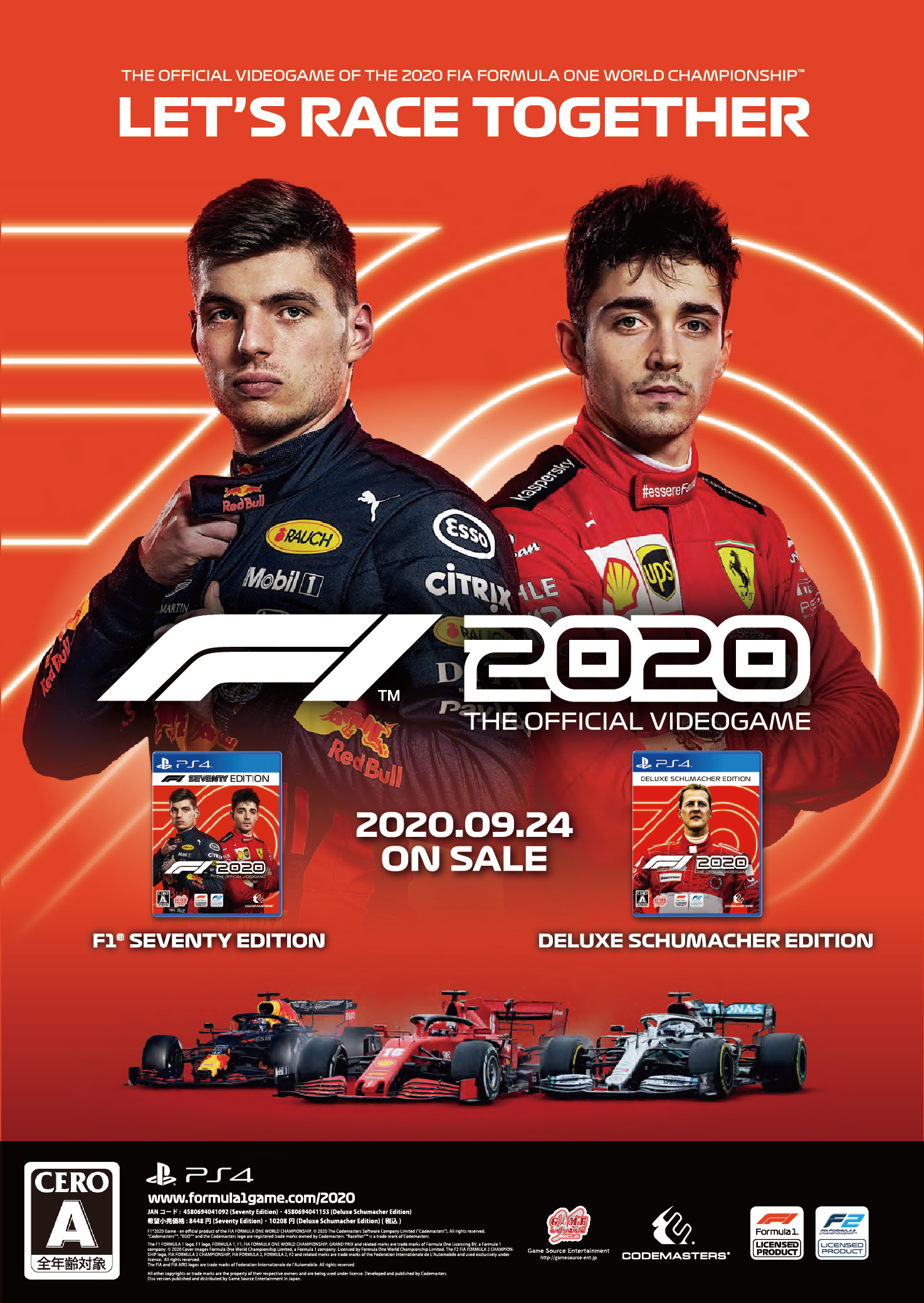 権利表記 :F1 2020 Game - an official product of the FIA FORMULA ONE WORLD CHAMPIONSHIP. © 2020 The Codemasters Software Company Limited ("Codemasters"). All rights reserved. "Codemasters”®, “EGO”® and the Codemasters logo are registered trade marks owned by Codemasters. “RaceNet”™ is a trade mark of Codemasters.