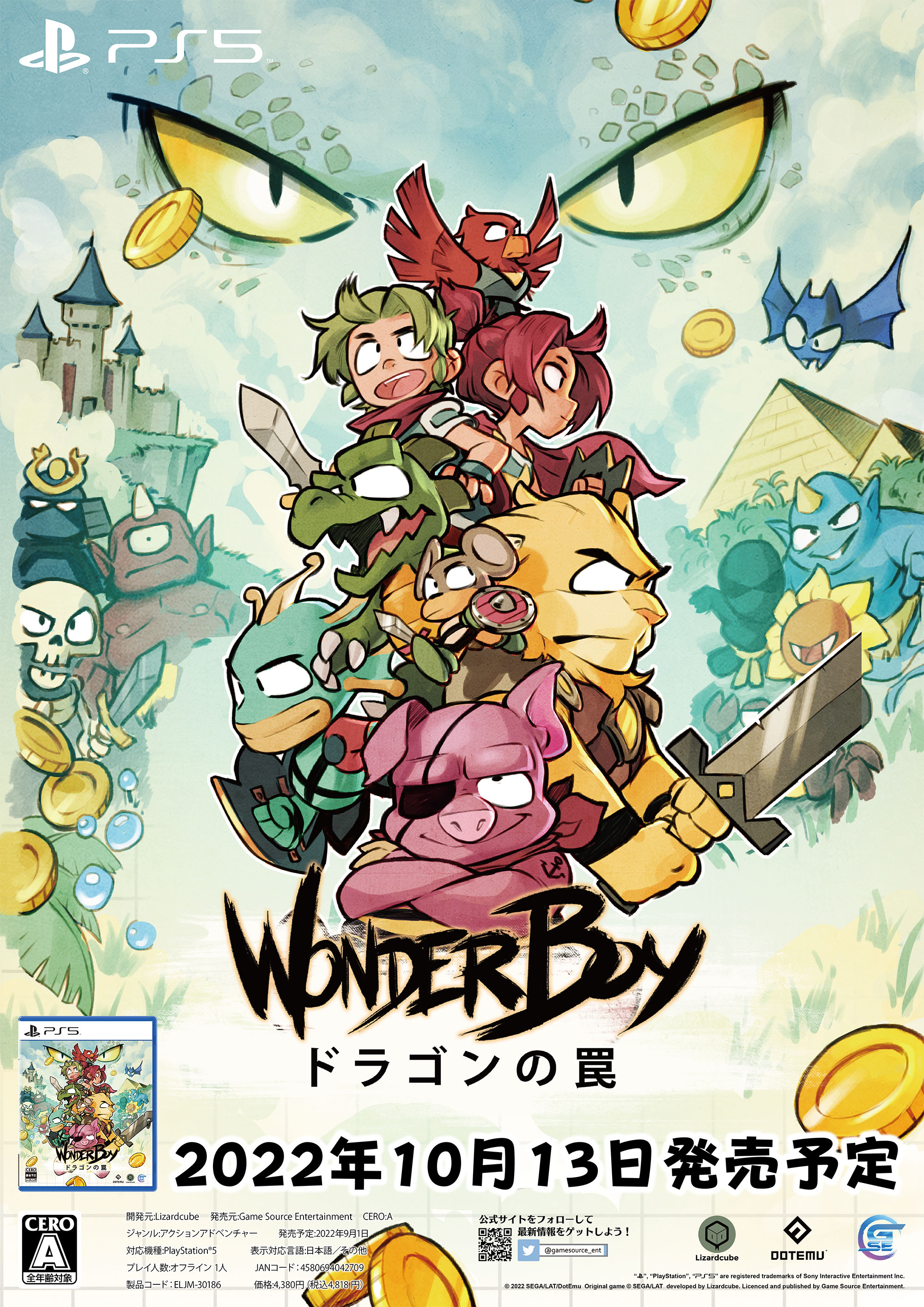 クラシック版のキャラクター「ヒューマン」、そして待望の新キャラクター「ヒューガール」としてプレイすることができます。さらに、リザードマン、マウスマン、ピラニアマン、ライオンマン、ホークマンも登場し、それぞれの能力を駆使して、モンスターワールドの奥深くに隠された秘密を解き明かそう。