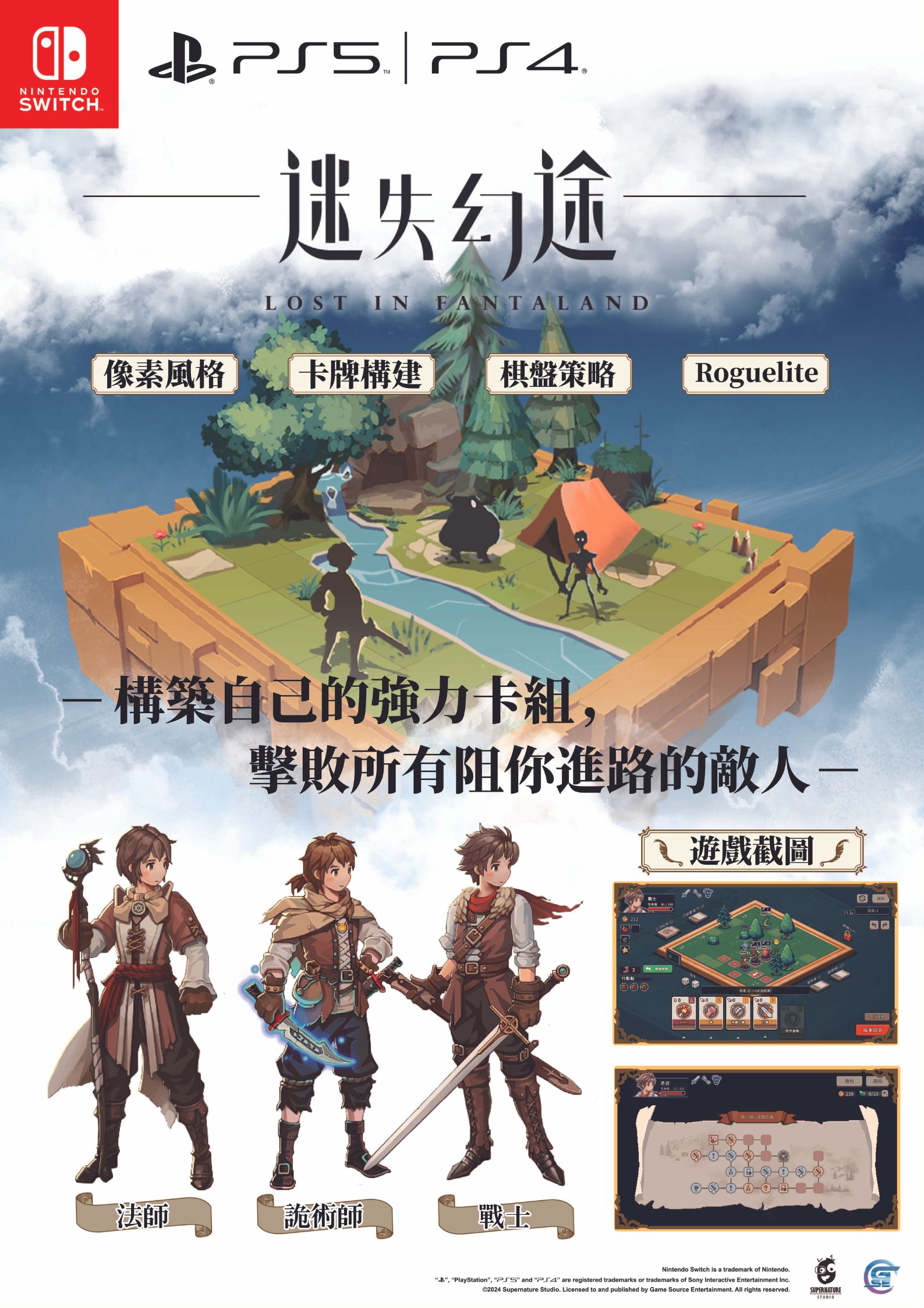 Supernature Studioが開発し、GSEがグローバルパブリッシングする『Lost in Fantaland』は、2024年にNintendo Switch™とPlayStation®5で発売予定のデッキ構築型ローグライトゲームです。プレイヤーは、道に迷い異世界に引きずり込まれた異邦人となり、"謎の人"の導きのもと、手持ちの資源(カード)を駆使して、危険が待ち受ける世界で生き残るために奮闘することになります。