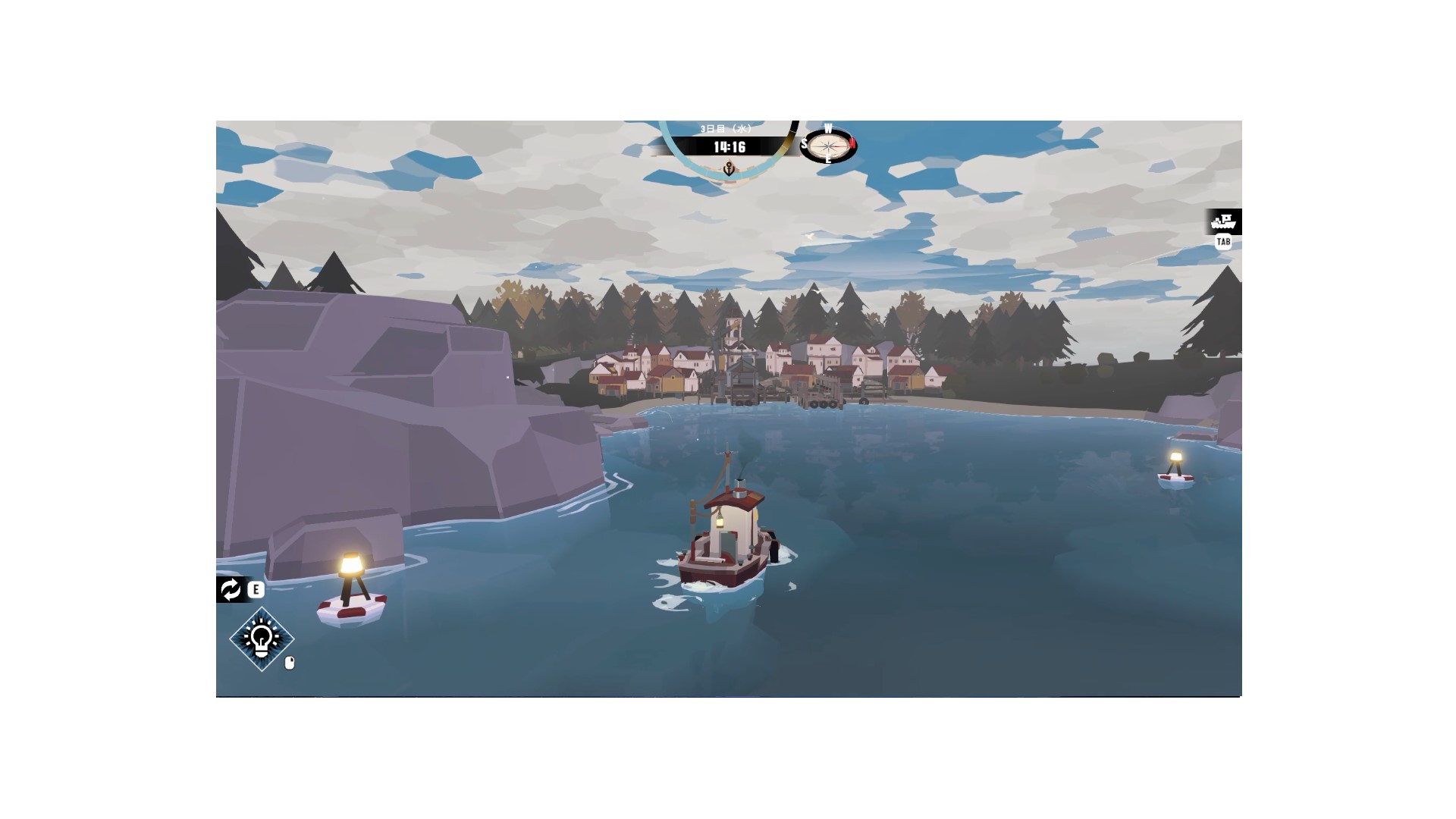 船は航行中、岩やその他の障害物に衝突すると壊れます。船が壊れると魚や物資などを保管する空間が減ります。そこで船を修理してもらう必要があるのですが、その時に声を掛けるのが船大工です。船大工は船を修理するだけではなく、船をアップグレードするために必要なものを売っています。資金が貯まったら船大工に行ってモーターや釣り竿を購入しましょう。そして、購入したら所定の場所にインストールを忘れないで下さい。購入しただけでは船はアップグレードされません。モーターを導入すると、船のスピードが上がり、釣り竿を購入すると釣りをする時の1回あたりの引き上げ時間が短縮され、明るいうちにより遠くへ行ったり、より多くのことができるようになります。